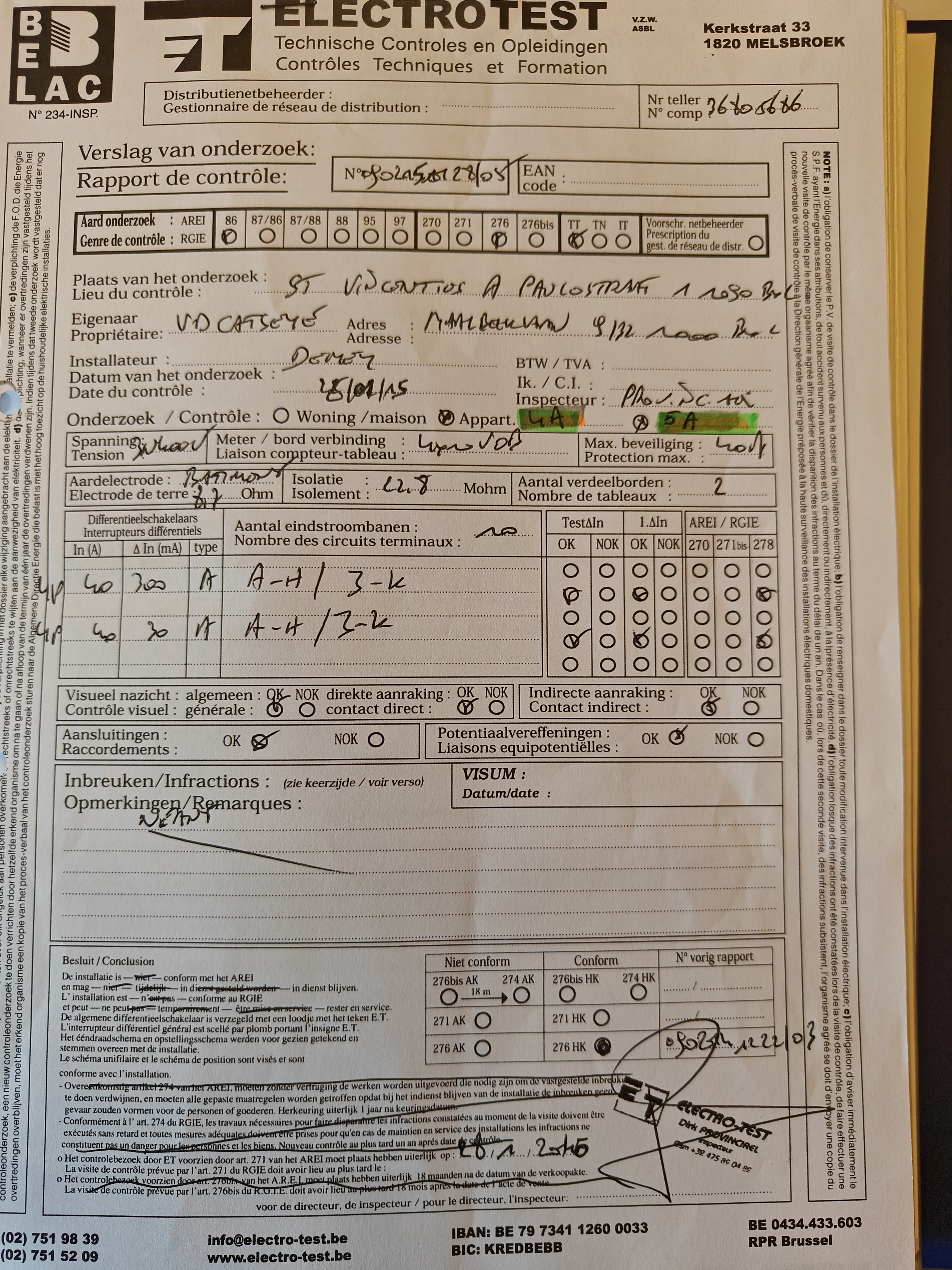 Certificat d'électricité